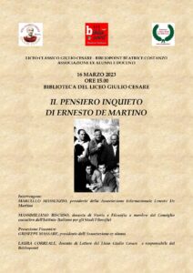 Fondata nel 2003 da Tullio De Mauro, la “Associazione degli ex alunni e dei docenti del Liceo Classico Giulio Cesare” promuove in collaborazione con il Liceo eventi culturali, manifestazioni sportive, premi e concorsi rivolti agli studenti e alle studentesse.